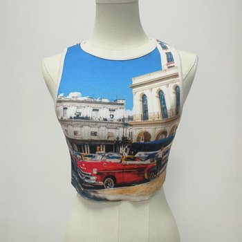Canottiera in Spandex marrone da donna Top corto alla moda con stampa traspirante in tessuto a maglia a lunghezza corta
